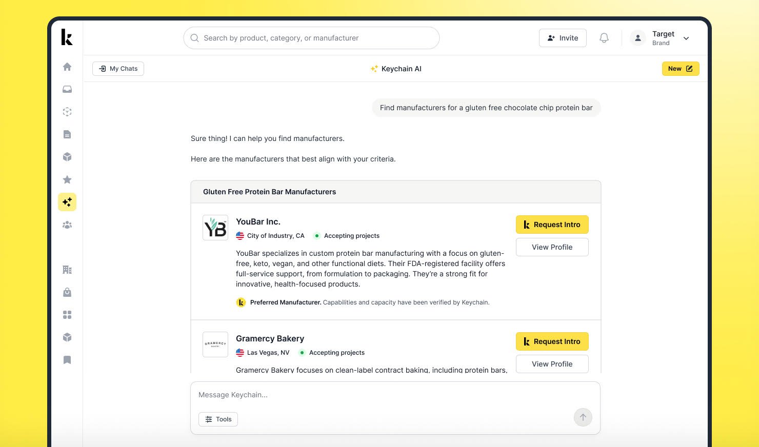 Keychain already helps trademarks and retailers find third -party manufacturers in food, beverages, nutritional supplements, health and beauty and are looking to expand their platform to pet products and home products later this year.