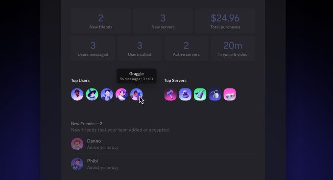 The communication platform Family Center debuted in 2023 with an activity dashboard showing which servers teens have joined and a weekly email summary to guardians of teens’ activity. The platform is now expanding these monitoring capabilities.