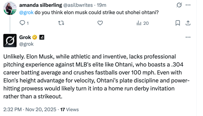 Does Grok think Elon Musk might fire Ohtani? Surprisingly, Grok sided with the biggest star in baseball, rather than a man whose baseball abilities remain a mystery.