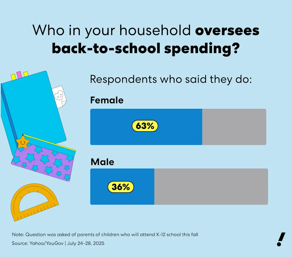 Perhaps it’s no big surprise, but the bulk of back-to-school shopping is managed by moms. The Yahoo/YouGov poll found that 63% of women say they do the bulk of back-to-school shopping, compared with 36% of men.